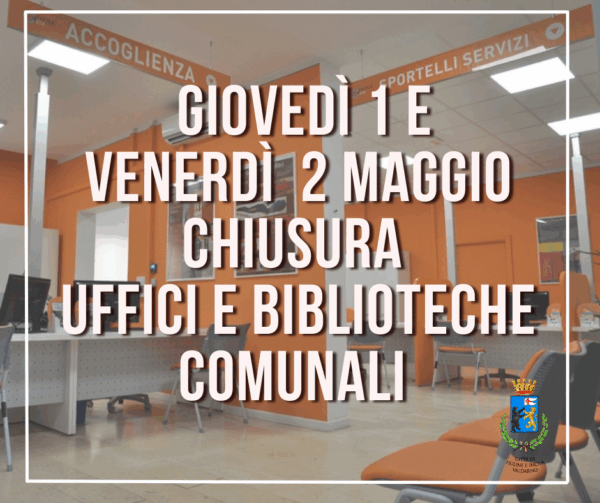 Ecco le variazioni di orari previste per i servizi comunali, in occasione della Festa dei lavoratori e del venerdì successivo