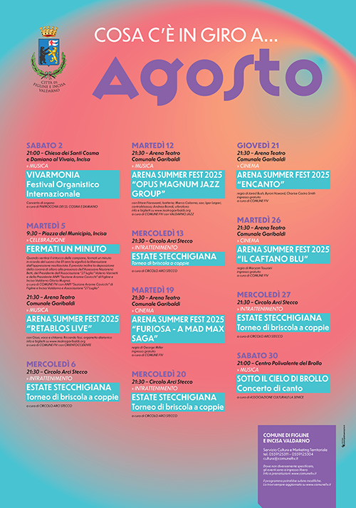 Ecco il calendario degli eventi organizzati o patrocinati dal Comune di Figline e Incisa Valdarno (clicca sull'immagine per ingrandirla). |