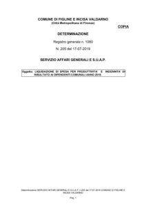 Determinazione liquidazione premialità anno 2018