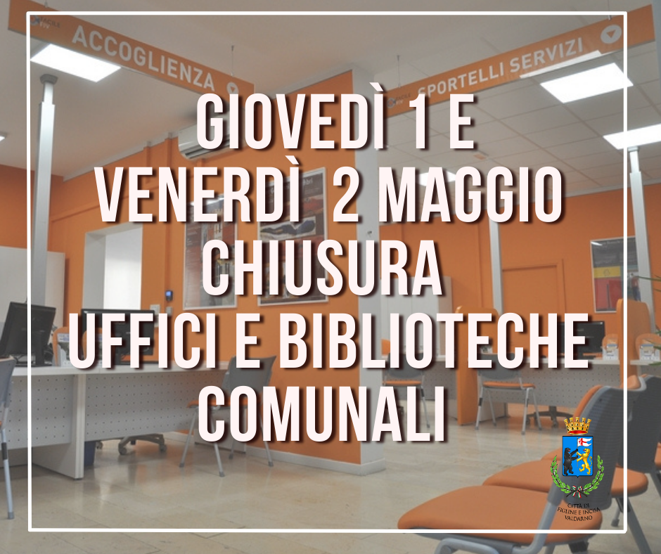 In occasione della Festa dei lavoratori, gli uffici municipali di Figline e di Incisa e le biblioteche Ficino e Rovai rimarranno chiusi giovedì 1 e venerdì 2 maggio.