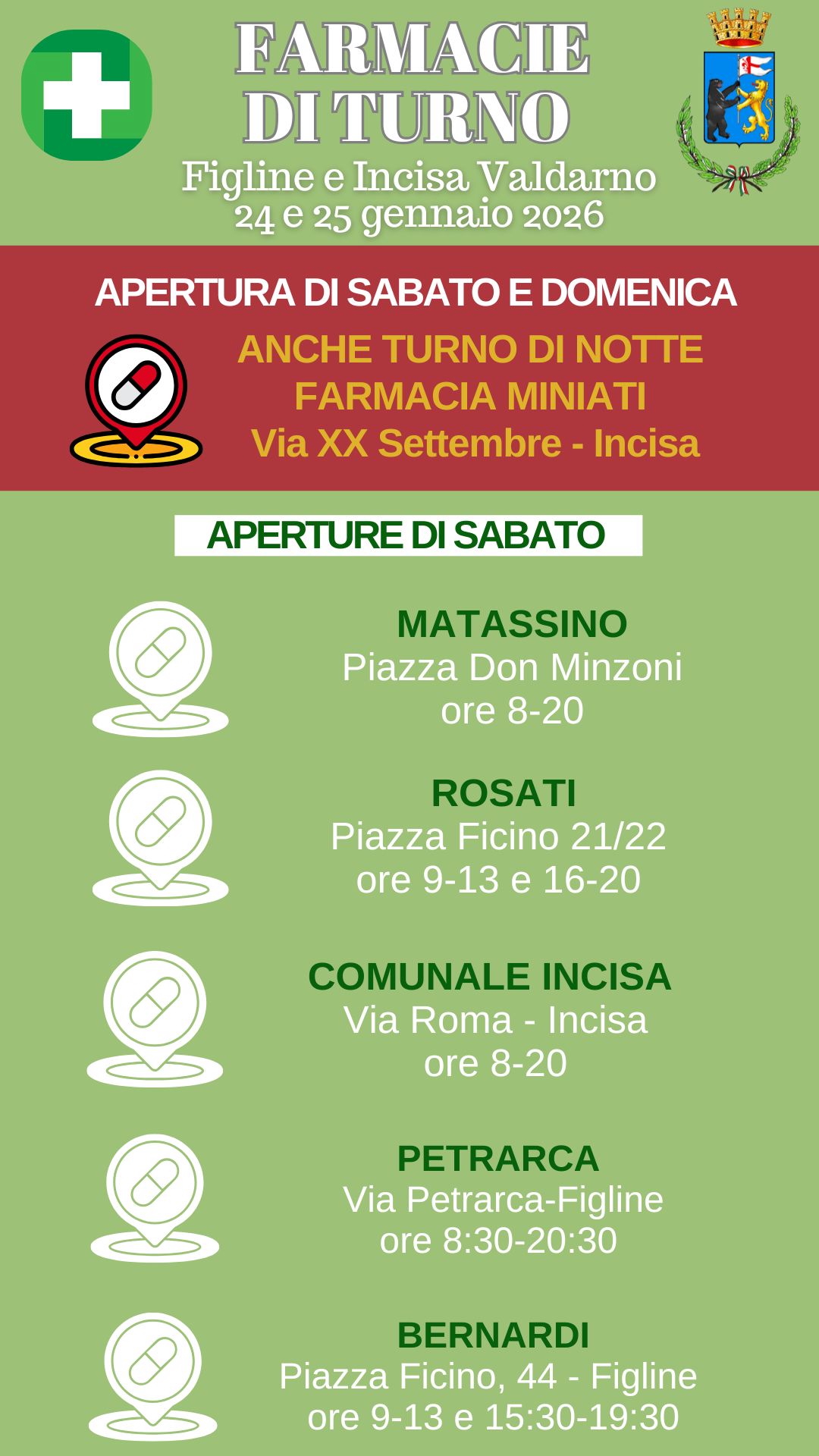 I turni delle farmacie del 24 e 25 gennaio a Figline e Incisa Valdarno