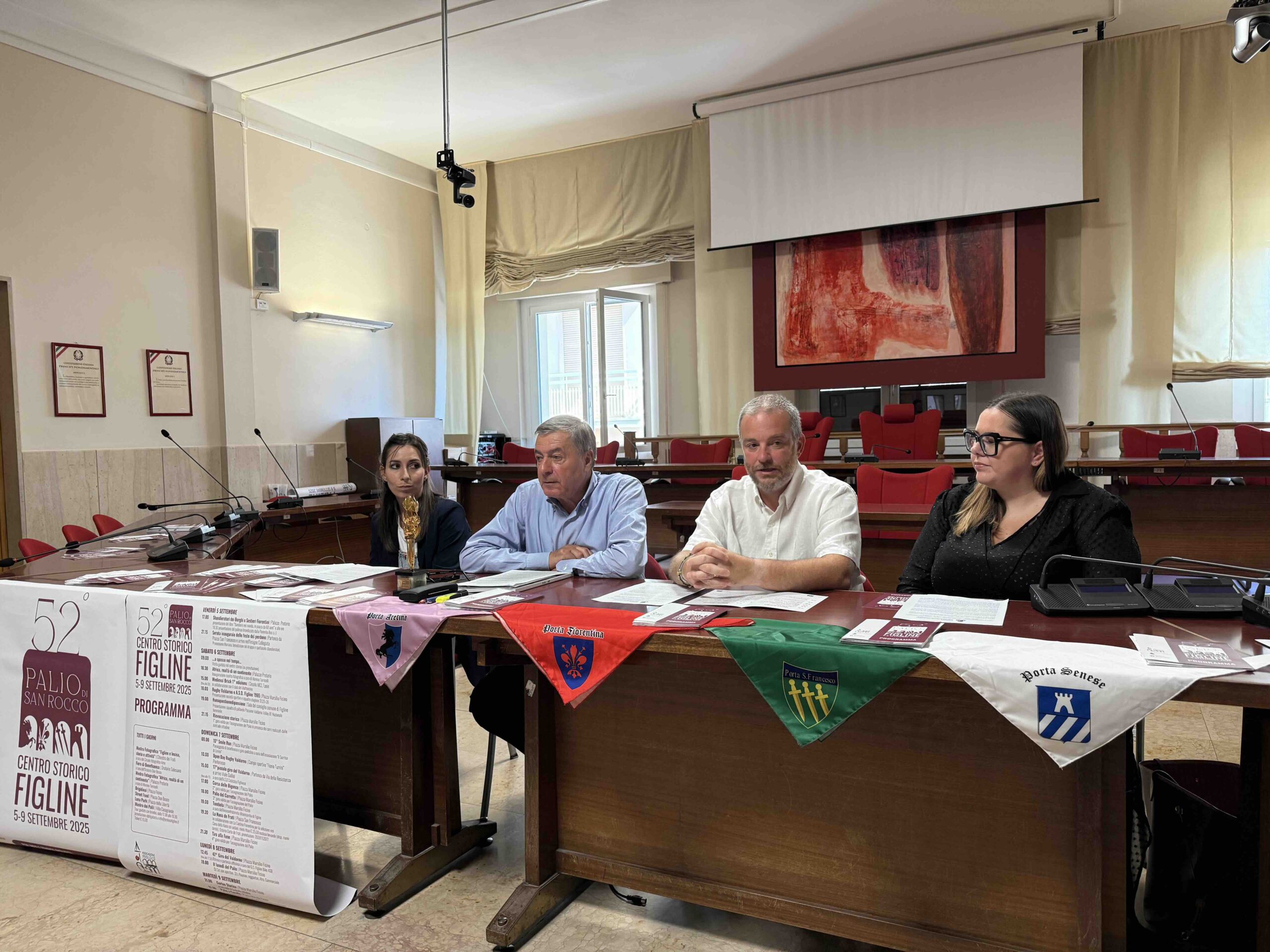 “Il Palio nasce da un cammino condiviso, fatto di collaborazione, passione e unità – aggiunge il presidente della Pro Loco Marsilio Ficino, Giampaolo Polvani. – In questi mesi, Pro Loco e Contrade hanno lavorato fianco a fianco con passione e dedizione, ognuno portando il proprio contributo e la propria energia, per dare vita a una manifestazione che appartiene davvero a tutta la città. Uno dei frutti più belli di questo lavoro di squadra è il nuovo logo del Palio, un simbolo che racconta Figline e racchiude l’anima delle sue quattro Porte: un segno che parla di identità, di radici e di futuro. Abbiamo voluto arricchire questa edizione con alcune novità importanti: il “Venerdì del Perdono”, che coniuga fede, tradizione e spettacolo, e il coinvolgimento diretto del pubblico attraverso il voto popolare sulla rievocazione storica. Perché il Palio non è soltanto da guardare: è un’esperienza da vivere insieme, come comunità. Il nostro impegno è stato quello di custodire le tradizioni più profonde e, allo stesso tempo, rinnovarle con entusiasmo, affinché il Palio continui a crescere e a emozionare, oggi come domani”.